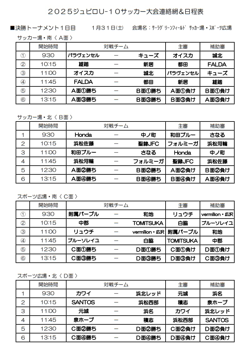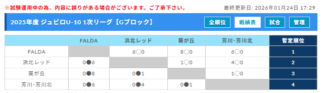 1位:FALDA、2位:浜北レッド、3位:葵が丘、4位:芳川・芳川北