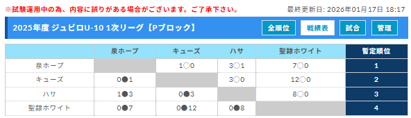 1位:泉ホープ、2位:キューズ、3位:ハサ、4位:聖隷ホワイト