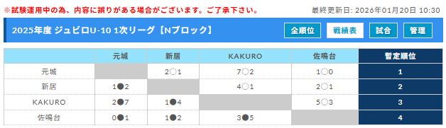 1次リーグ 12月7日(日)~1月25日(日)までに終了