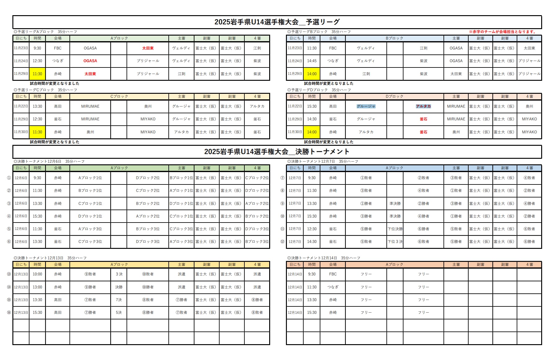 予選リーグ:2025年11月22日(土)、23日(日)、24日(月祝)、29日(土)、30日(日)