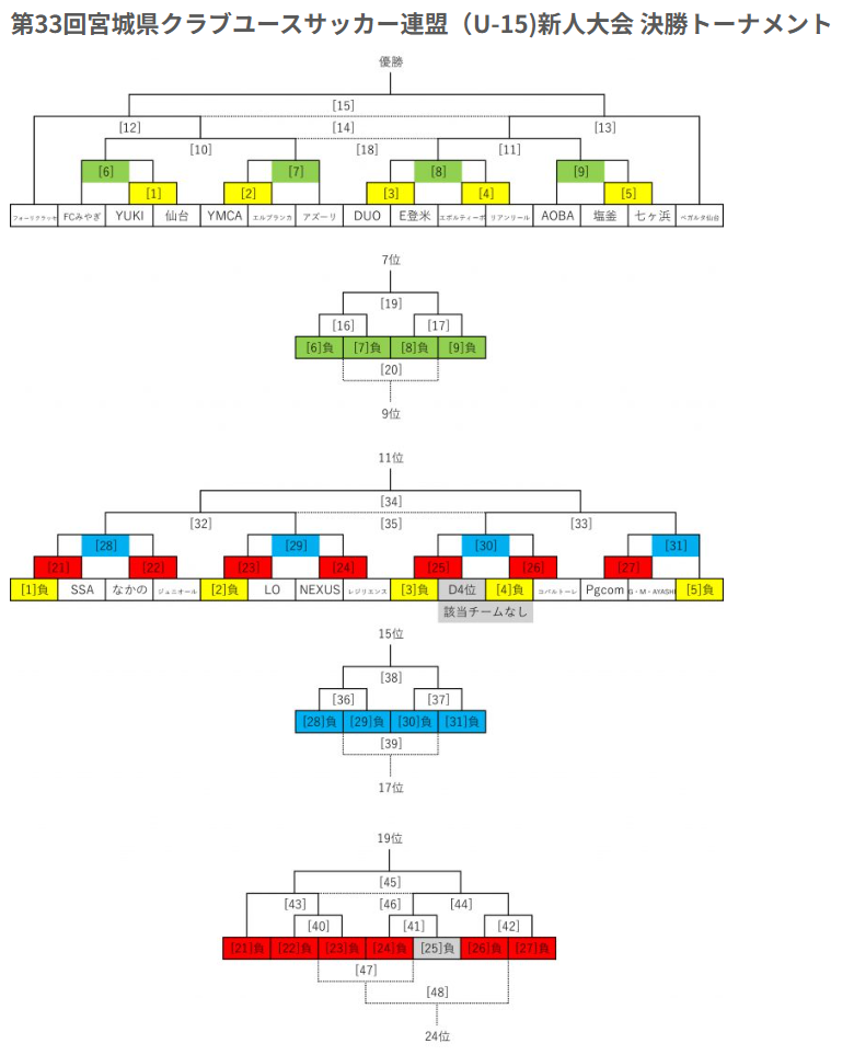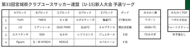 2024年度 第32回宮城県クラブユースサッカー連盟(U-15)新人大会 優勝はフォーリクラッセ仙台!不明分の結果情報募集