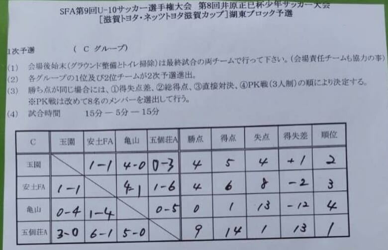 1位:五箇荘A、2位:玉園、3位:安土FA、4位:亀山