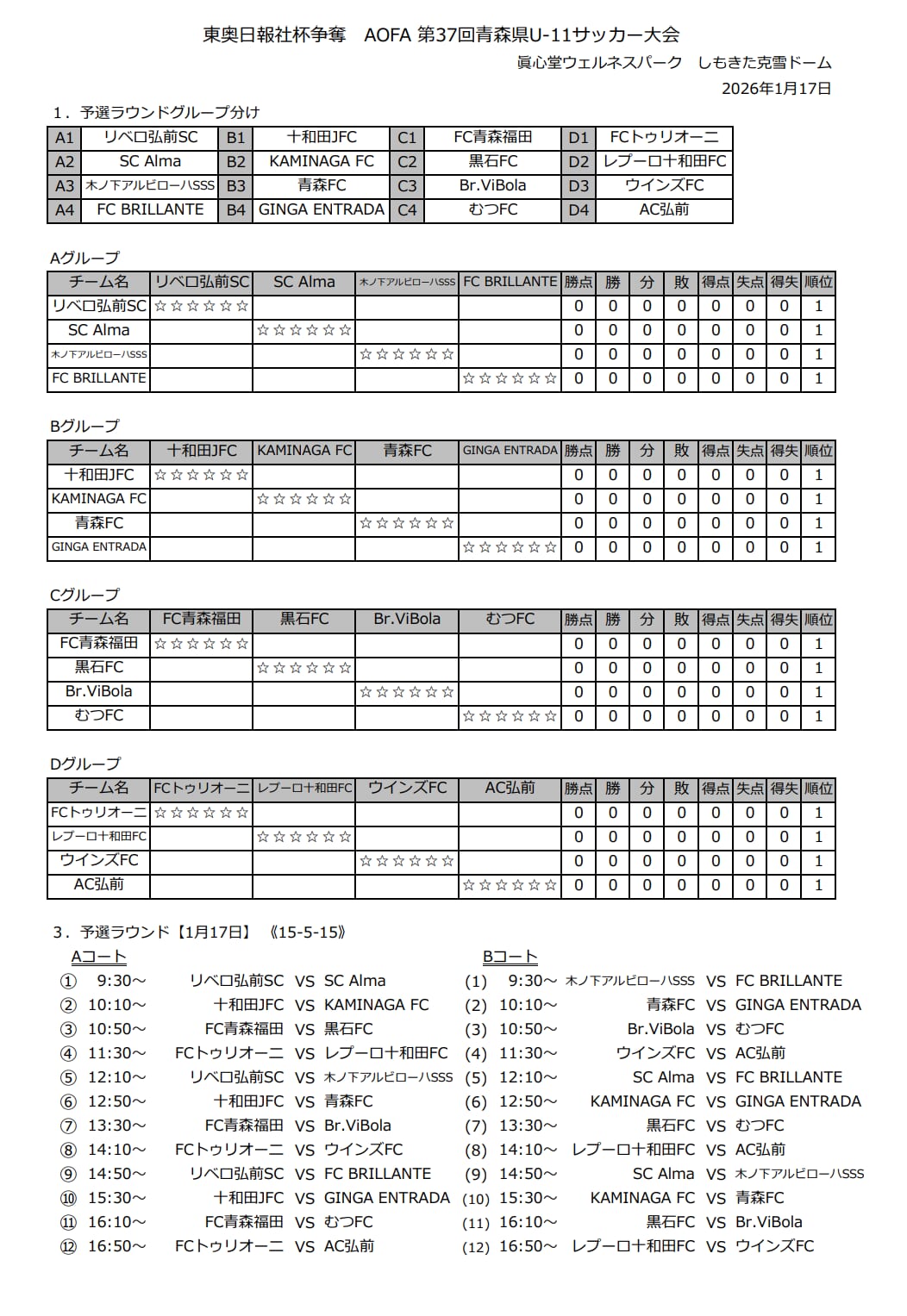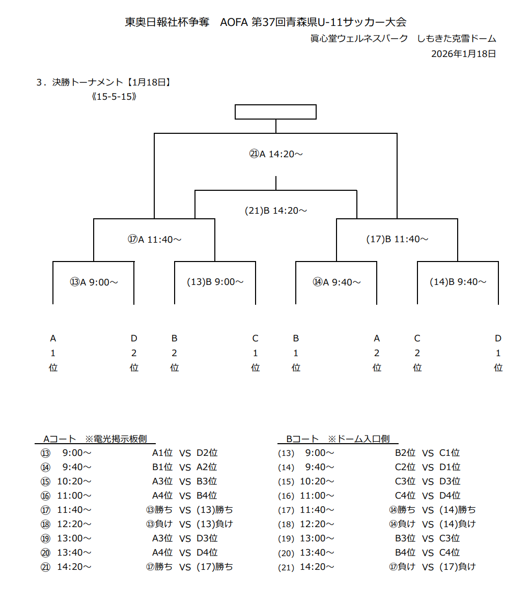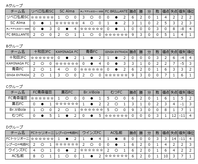 B:十和田JFC、KAMINAGA FC、青森FC、GINGA ENTRADA