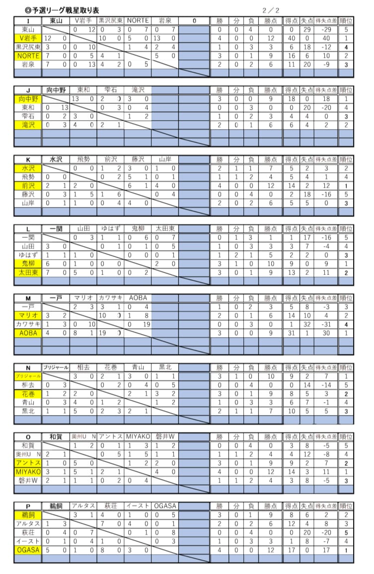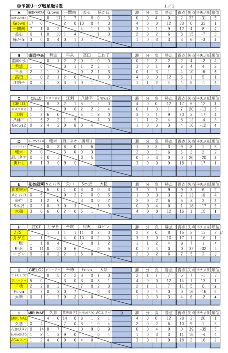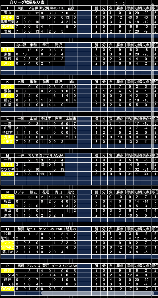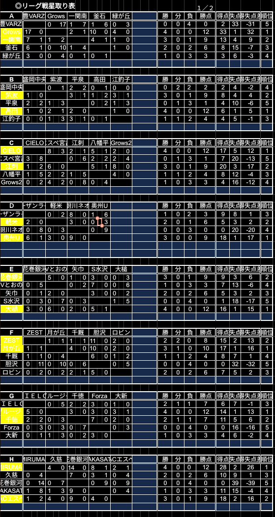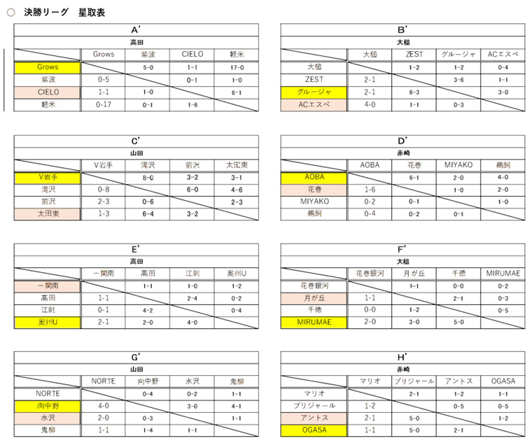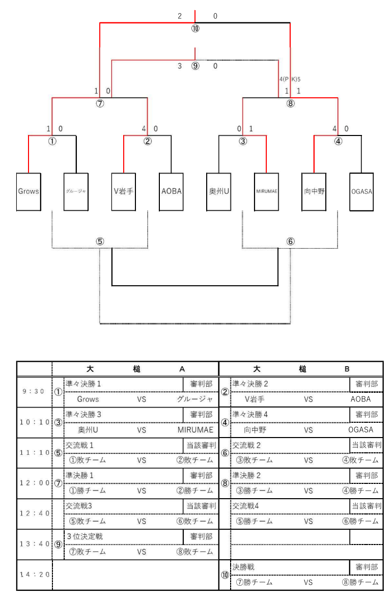④ 向中野FC(G1位) 4-0 OGASA(H1位)