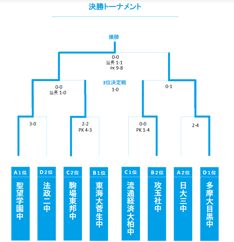 C1位:流通経済大柏中〔千葉1〕 0-0(PK 1-4)B2位:攻玉社中〔東京〕