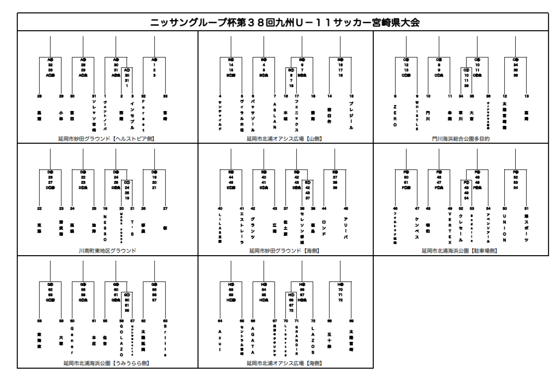 1回戦~準々決勝戦(12月6日・7日・13日) → 延岡市北浦運動公園 他