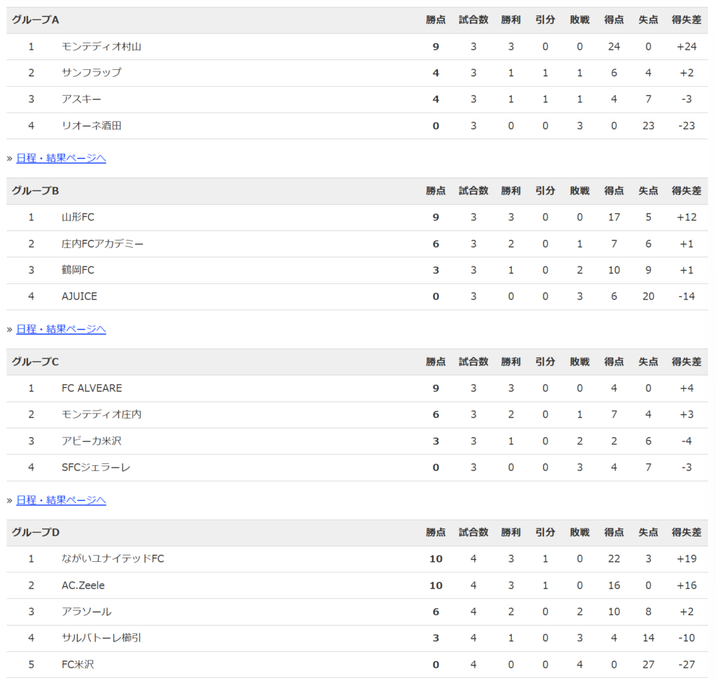 B:山形FC、庄内FC、鶴岡FC、AJUICE