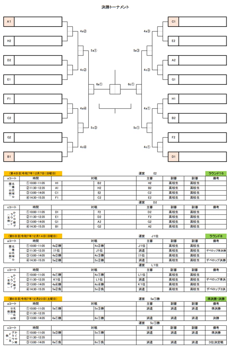 決勝トーナメント:12月7日(日)、14日(日)、20日(土)