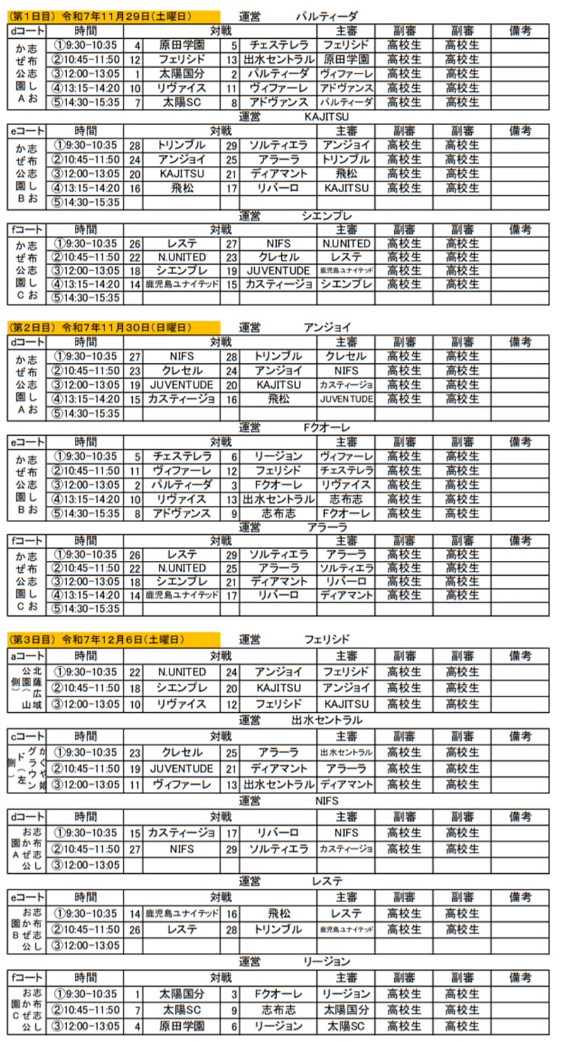 ※本大会上位 2 チームは 2026 年2月7日(土)・8日(日)に熊本県で開催される「KYFA 第35回九州クラブユース(U-14)サッカー選手権大会」へ鹿児島県代表として出場する権利と義務を