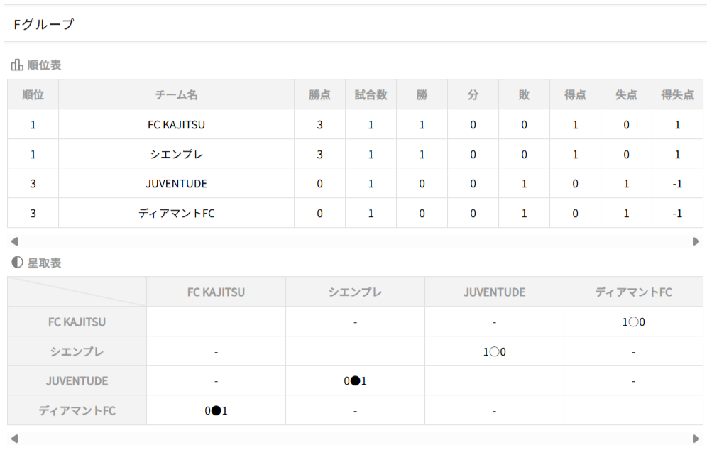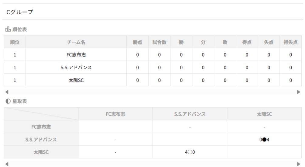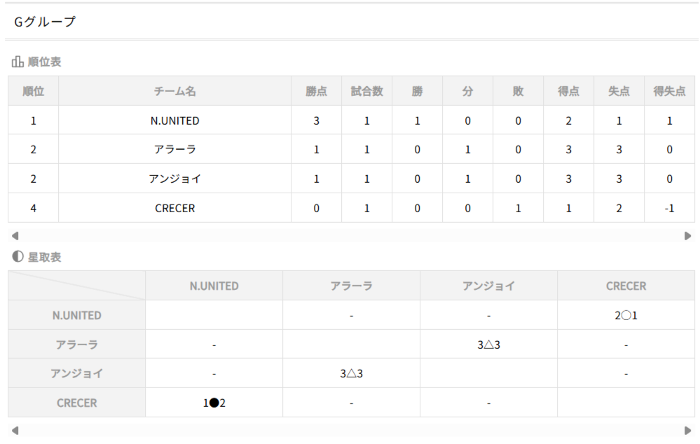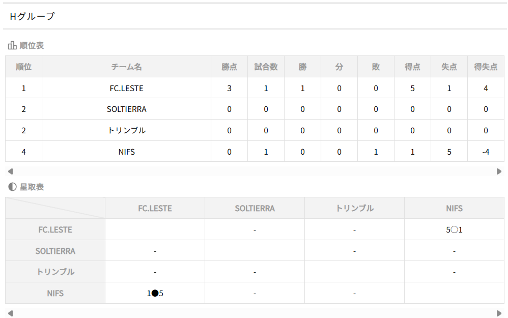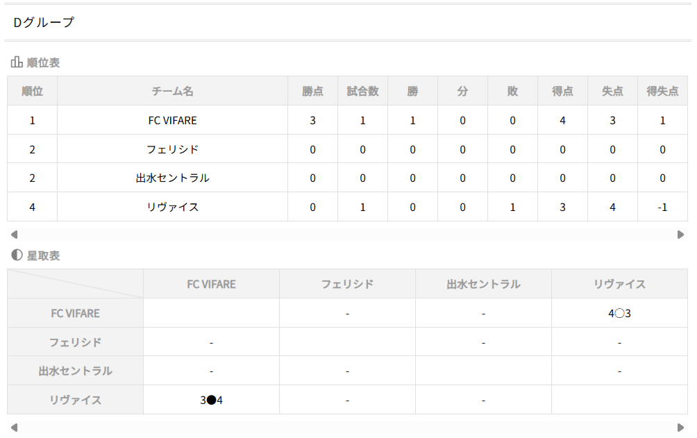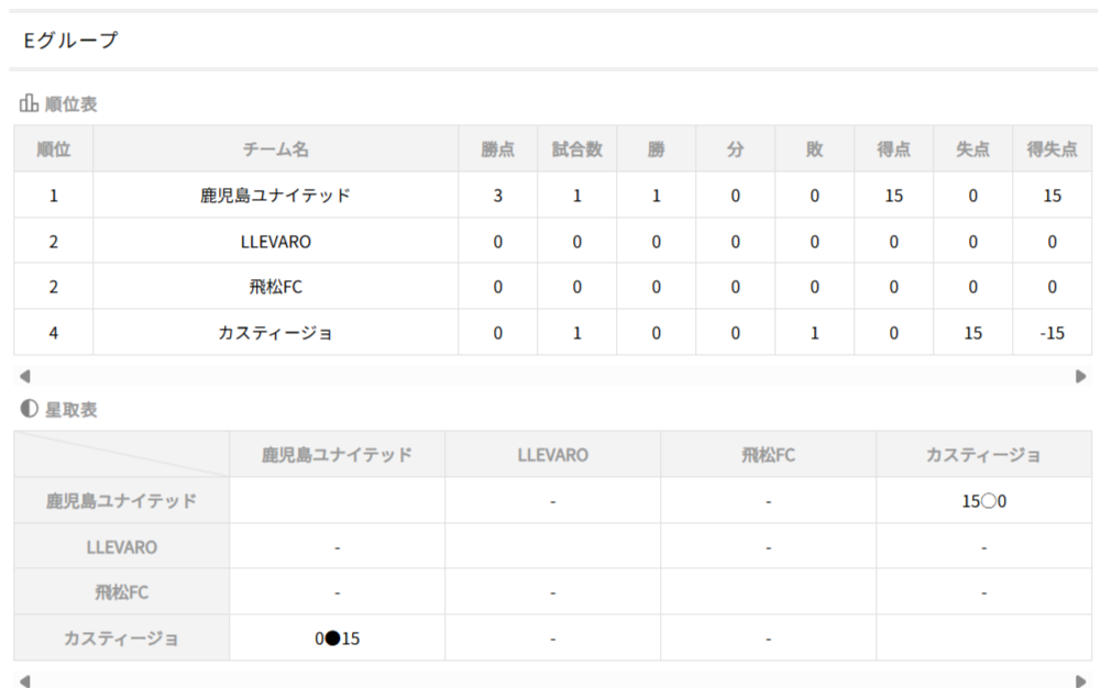 ①勝点(勝=3、分=1、負=0)、②得失点、③直接対決結果、④総得点、