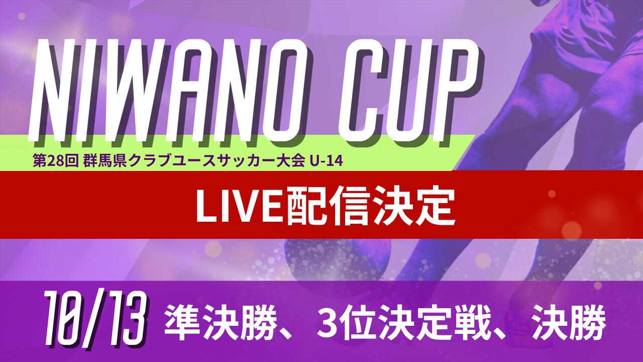 NIWANO CUP 第28回群馬県クラブユースサッカー大会 U-14の準決勝、決勝、3位決定戦の4試合を株式会社グリーンカードがLIVE配信します。