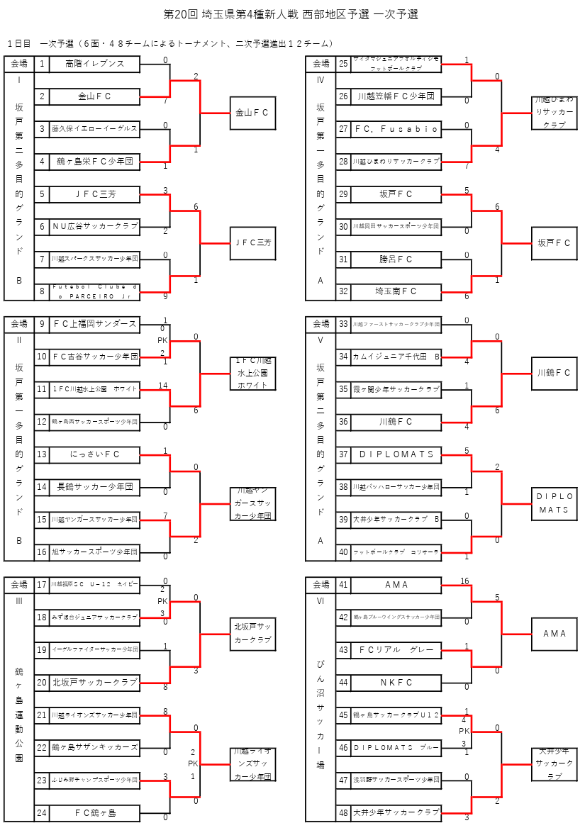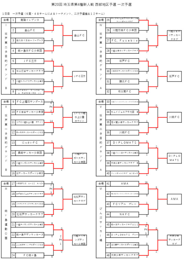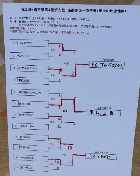2024年度 第19回埼玉県4種新人戦 U-11 西部地区大会 2次予選12/22判明結果掲載 4チームが県大会へ!引き続き不明分結果情報お待ちしています