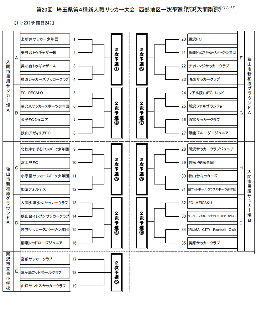 ・所沢入間南部 11月23日(日)予備日24日(月祝)