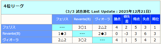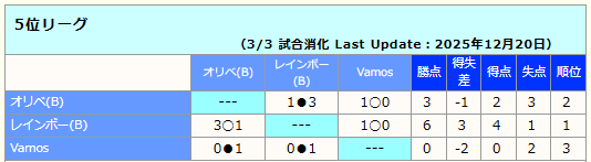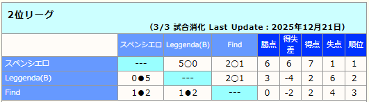 2部・3部のリーグ表も作成いたしましたので、両試合ともリーグ表に反映いたしました。