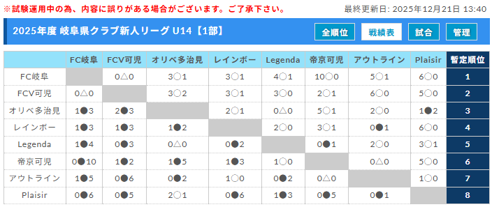 2. 2025年度 岐阜県クラブ新人リーグ U14