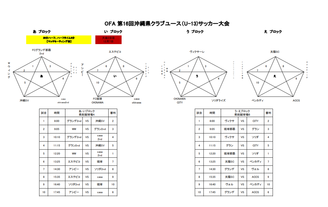 ※今大会上位 4 チームは次年度の沖縄県クラブユース(U-14)サッカー大会においてシードとする。(ただし 2nd チームは該当しないこととし、次点のチームを繰り上げる)