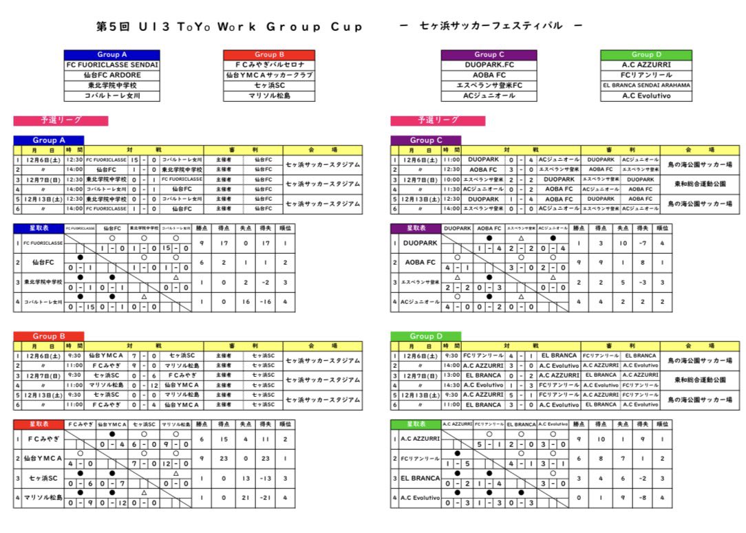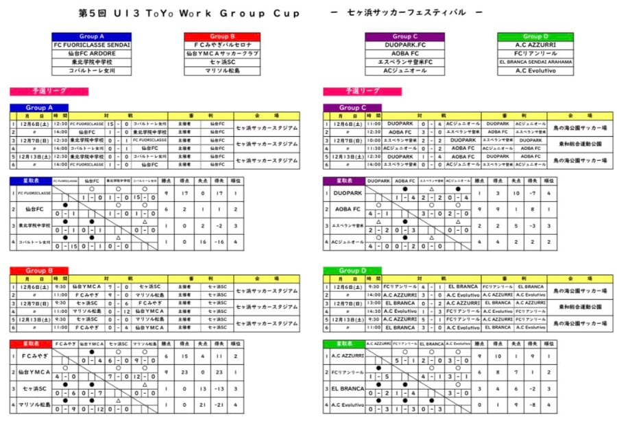 第5回 U13 Toyo Work Group Cup 七ヶ浜フェスティバルの全結果情報ありがとうございます!