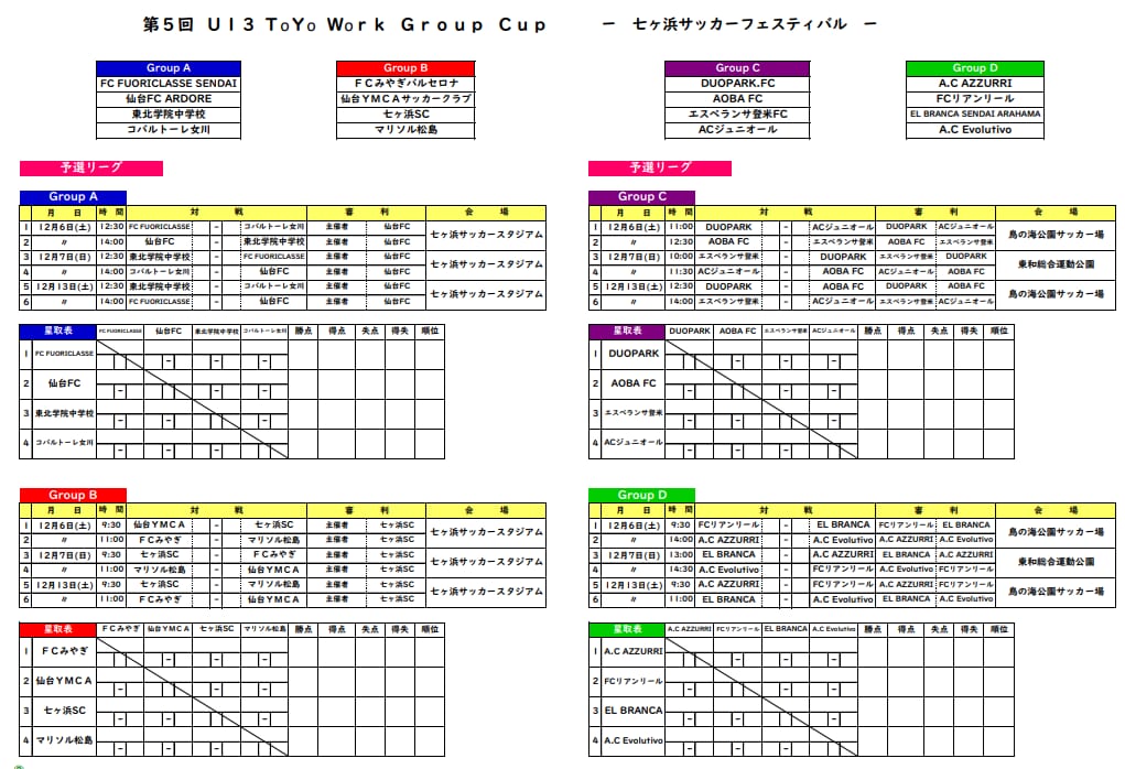 日程参照:東北学院中学校サッカー部、FC FUORICLASSE SENDAI