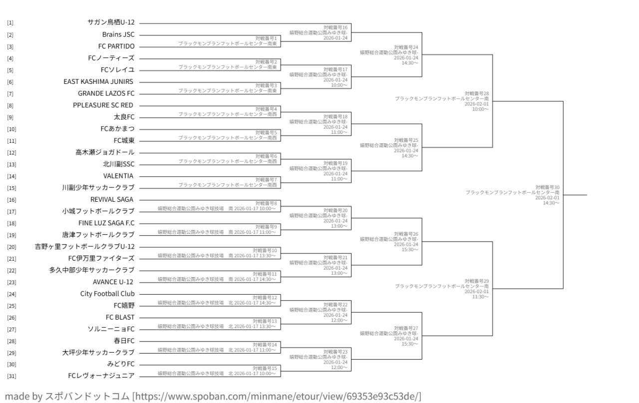 ※1月17日(土)が県立中受検のためチームが対応できないチームに限り、対象となる組合せは1月18日(日)に延期