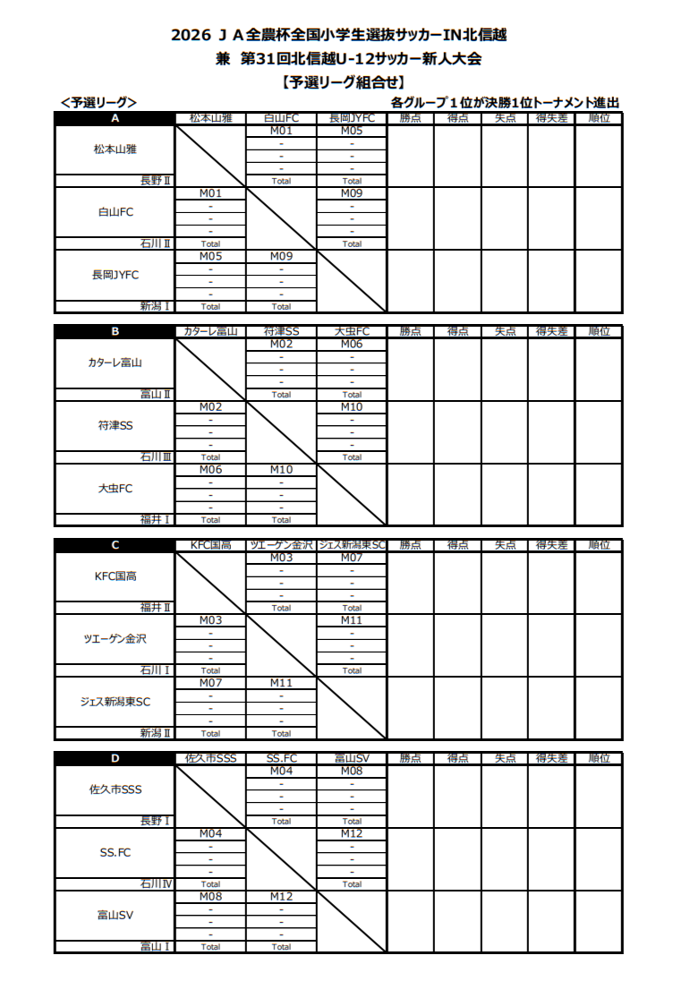 2026 JA全農杯 全国小学生選抜サッカーin北信越 兼 第31回北信越U-12サッカー新人大会