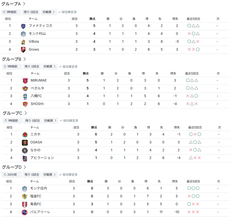 12/6 予選リーグ 試合結果