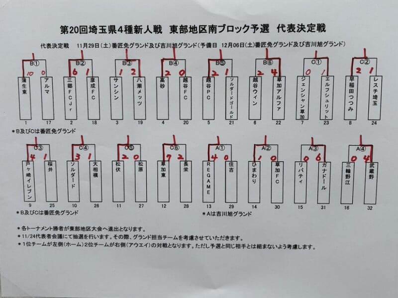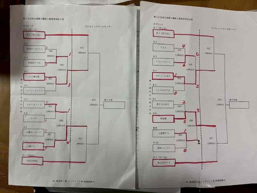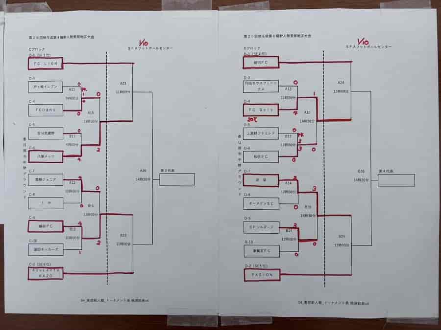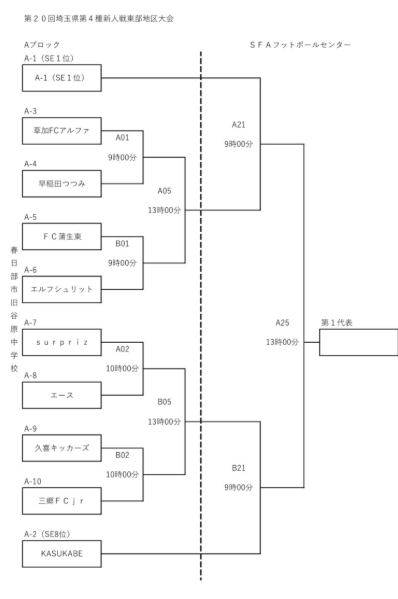 ABCDブロックに分かれてトーナメント戦。ブロック代表が県大会。