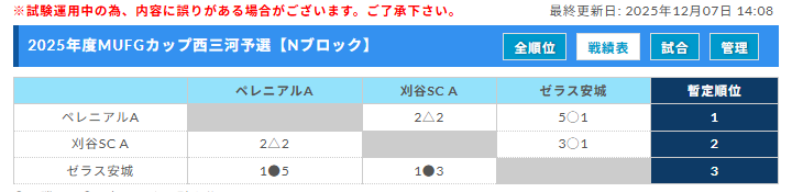 Nブロック 12/7最終結果 1位:ペレニアルSC A