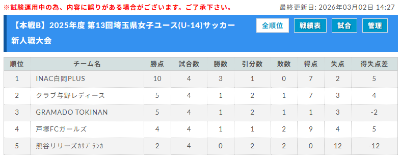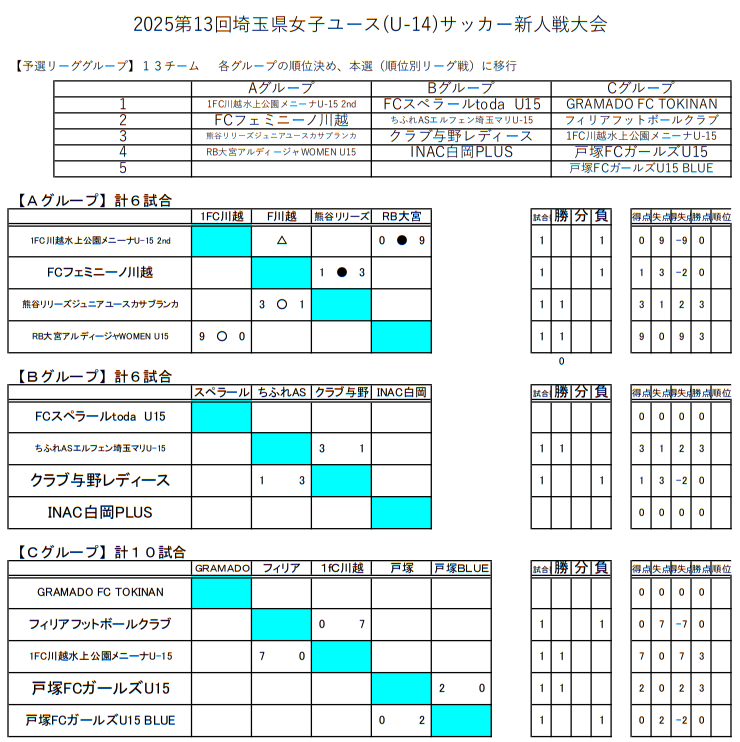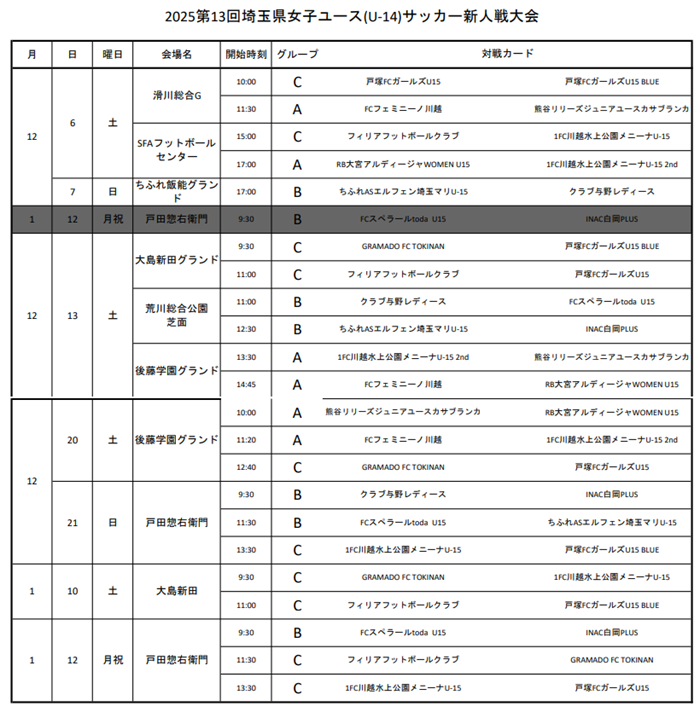 2025年度 第13回埼玉県女子ユース(U-14)サッカー新人戦大会
