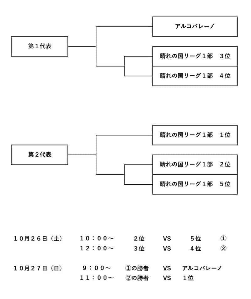 ・同点の場合はリーグ上位チーム(中国→県)の勝ちとする。