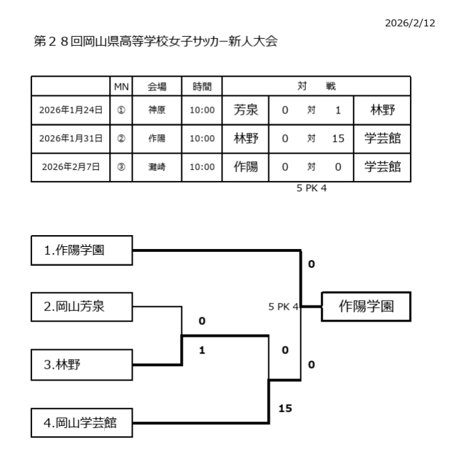 作陽 0-0(PK5-4) 岡山学芸館