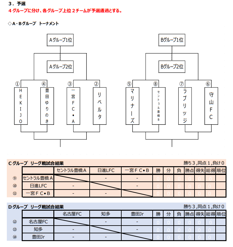 本大会の成績上位2チームが 2026 年 3 月 29 日(日)会場:グリーンフィールド中池で行われる東海大会に参加することができる。