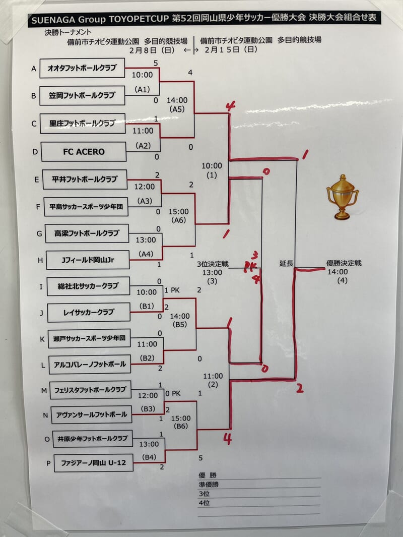 U-12最後の公式戦を優勝で飾ったファジアーノ岡山の皆さんの様子はこちら(参照:ファジアーノ岡山育成部X)