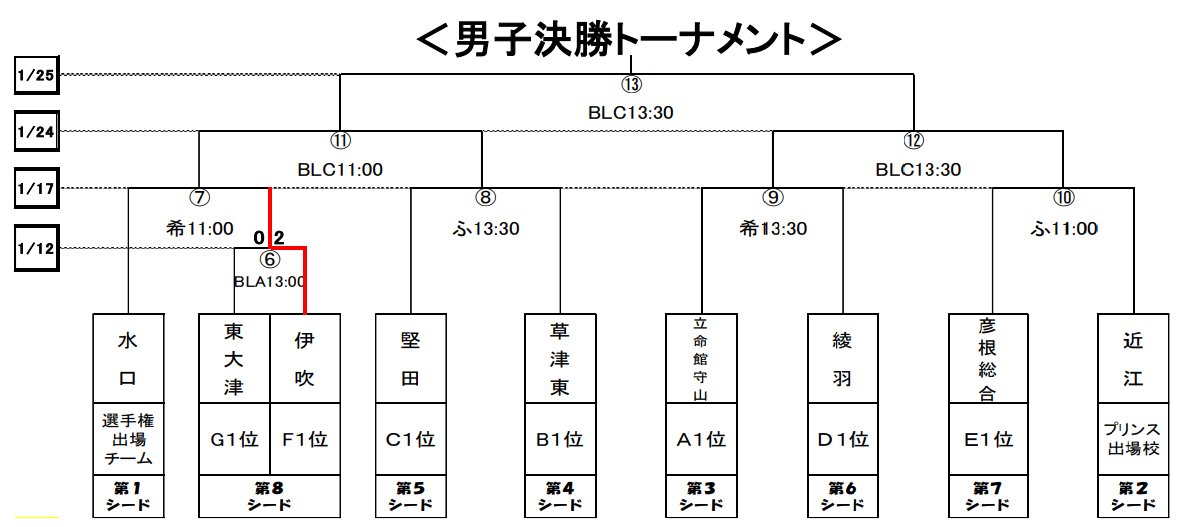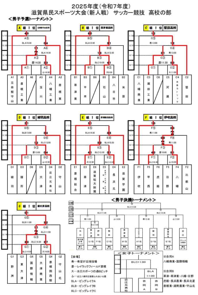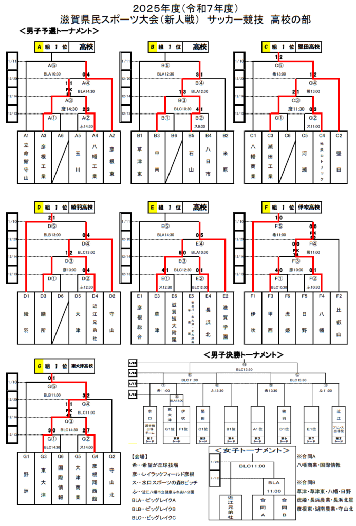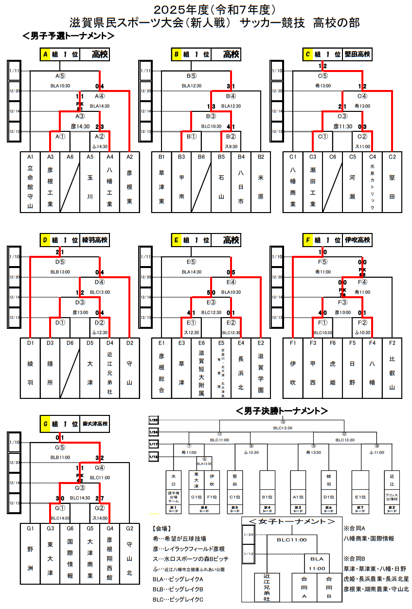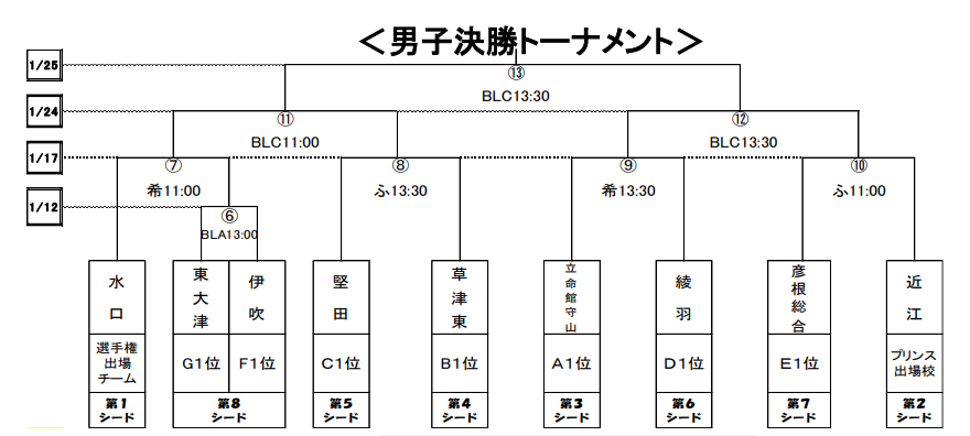 滋賀リーグ上位 (A)立命館守山 (B)草津東 (C)八幡商業 (D)綾羽 (E)彦根総合 (F)伊吹 (G)野洲