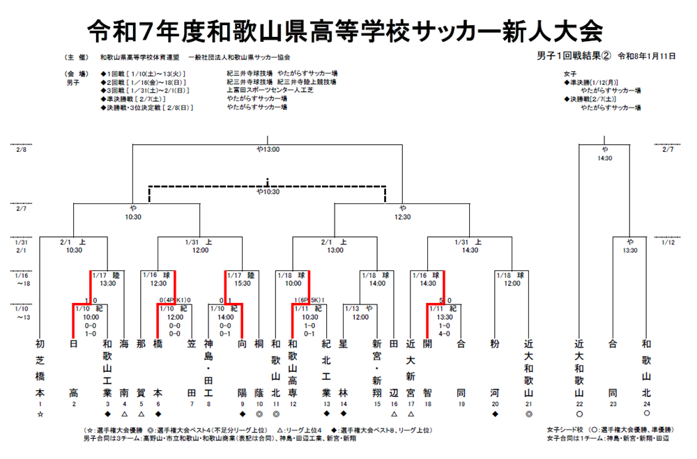 ・上記4チームを除く高円宮杯JFA U-18サッカーリーグ2025和歌山(ジャンプリーグ)の上位4チームは初戦で互いに対戦しない。