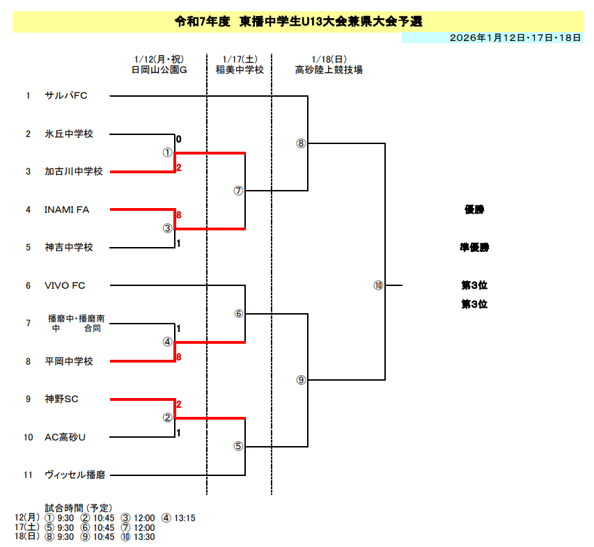 播磨中・播磨南中合同 1-8 平岡中学校
