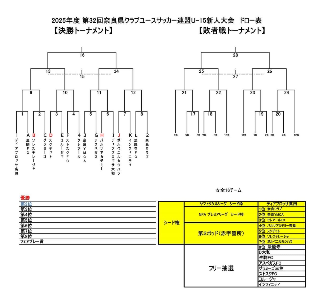 ・大会上位8チームに、2025年度奈良県クラブユース(U-15)選手権大会のシード権が与えられます。