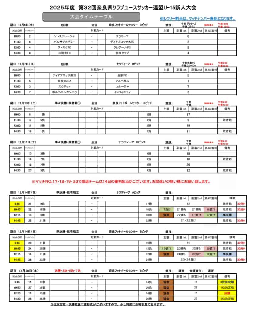 2025年度 第32回奈良県クラブユースサッカー連盟U-15新人大会
