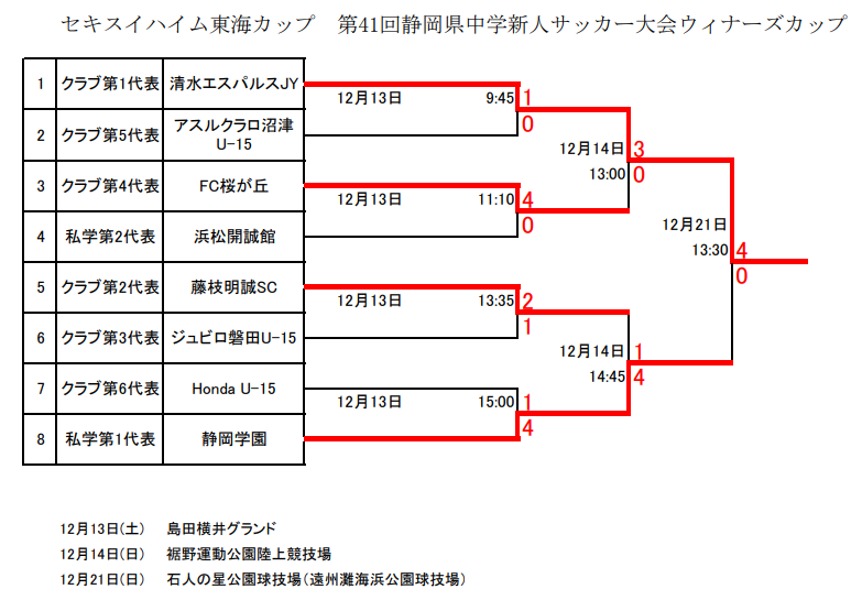 参照:静岡学園中サッカー部、セキスイハイム東海カップ 第41回 静岡県中学校U-14新人サッカーチャレンジカップ組み合わせ表より