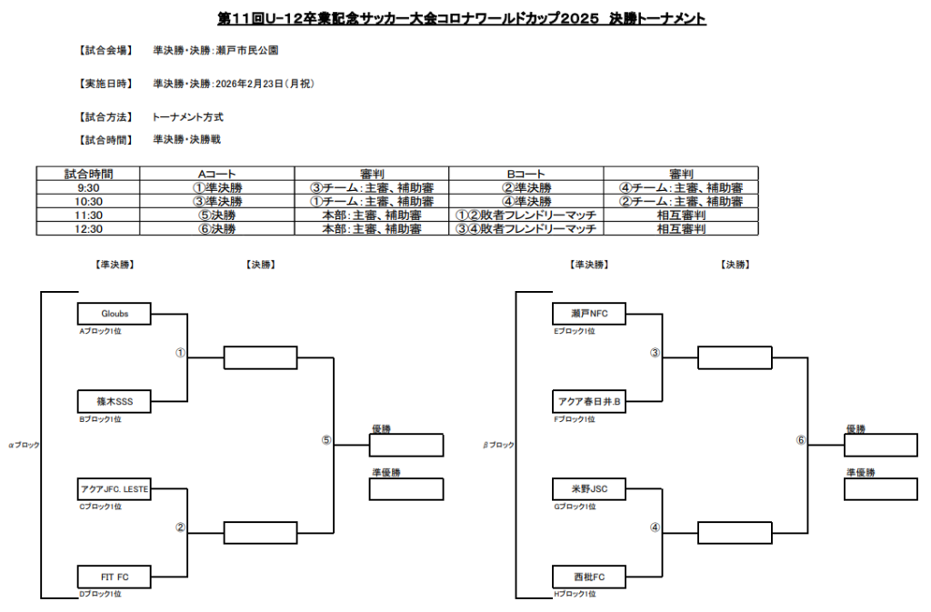 第11回 東尾張 U-12卒業記念サッカー大会/コロナワールドカップ2025(愛知)