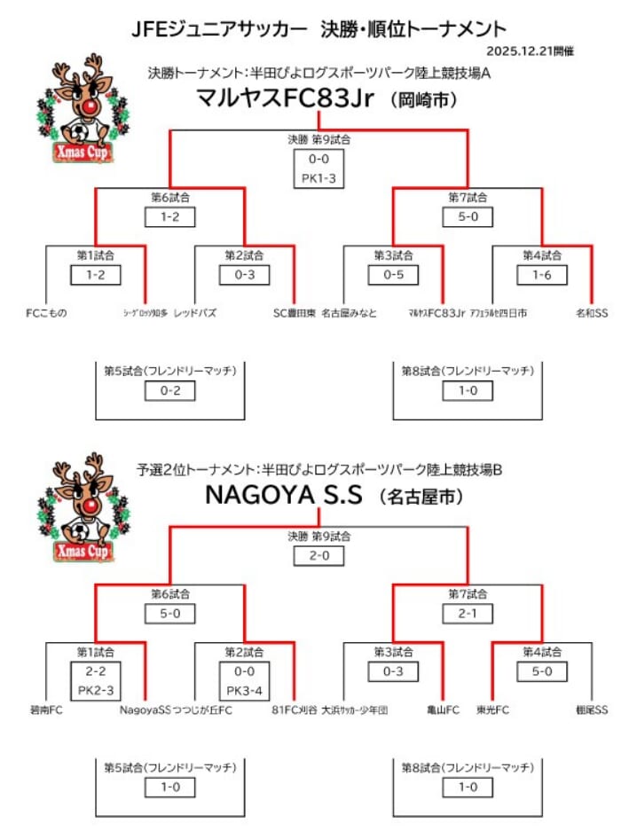 2024年度 第19回JFEジュニアサッカークリスマスカップ U-12(愛知)優勝は蒲郡FCマリナーズ!1・2・5・6位トーナメント結果掲載!3・4位トーナメント結果募集
