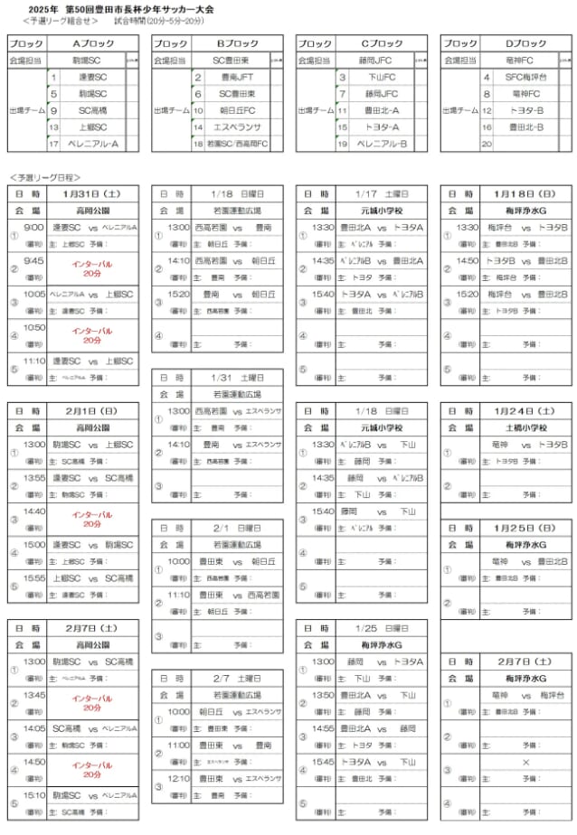2025年度 第50回豊田市長杯少年サッカー大会