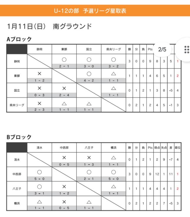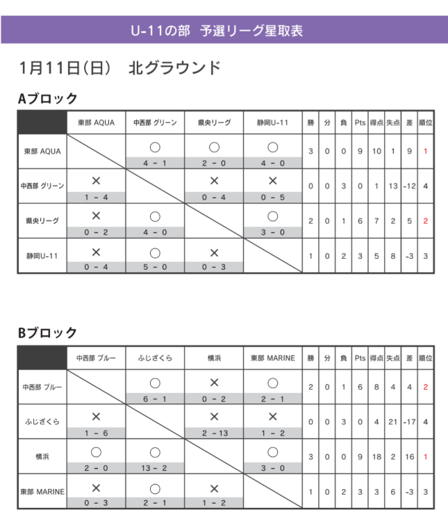 予選リーグ結果 1/11