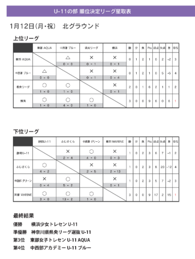 順位リーグ 1/11