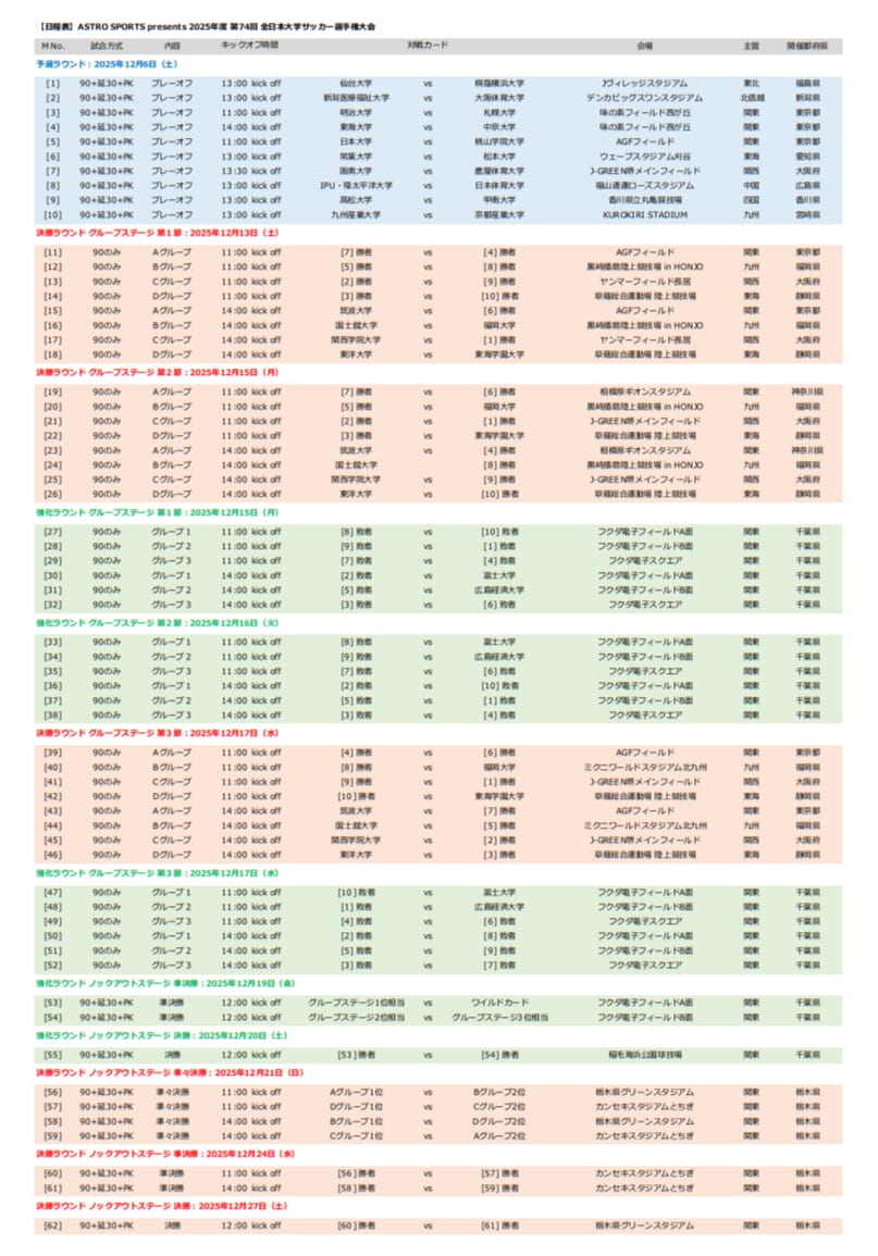 (参照:全日本大学サッカー連盟HP、JFA.jp)