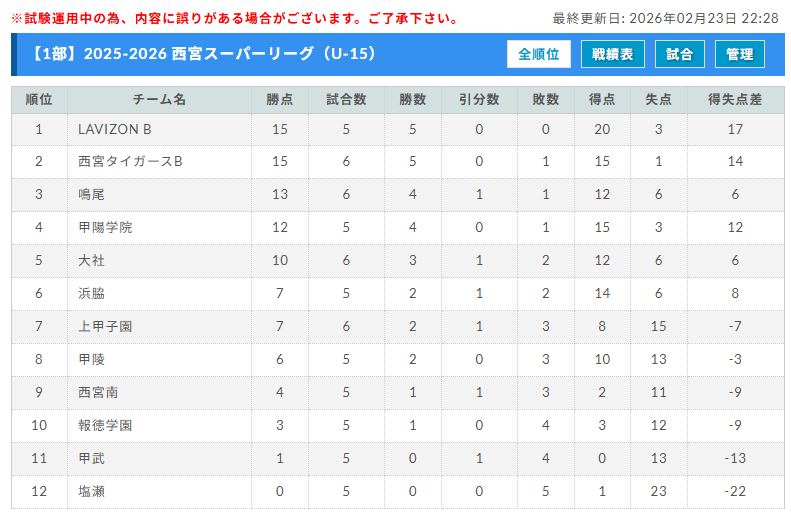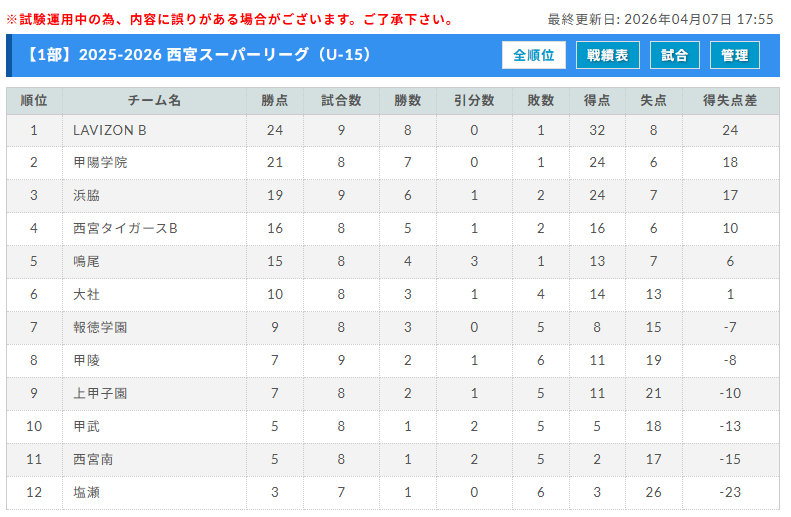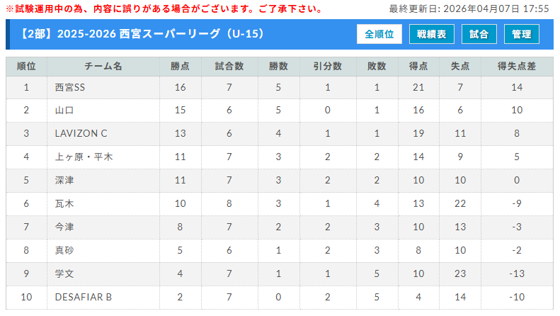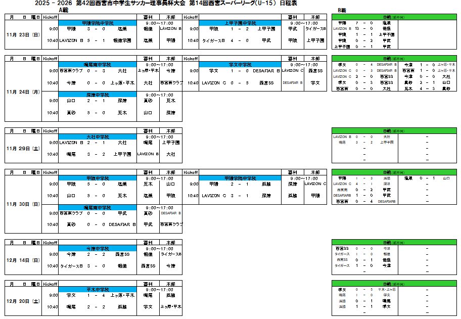 2025-2026 第42回西宮市中学生サッカー理事長杯大会 第14回西宮スーパーリーグ(U-15)