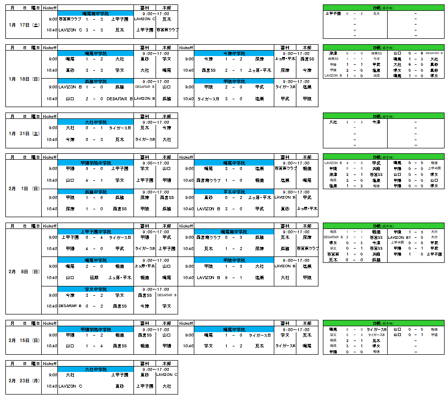 リーグ表にも入力いただいていましたので、遅くなりましたがその他の判明分の結果も含め、記事に反映いたしました。