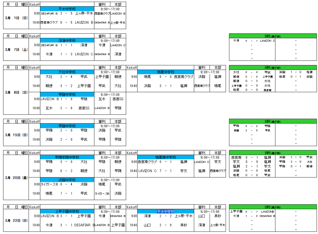 第42回西宮市中学生サッカー理事長杯大会 第14回西宮スーパーリーグ