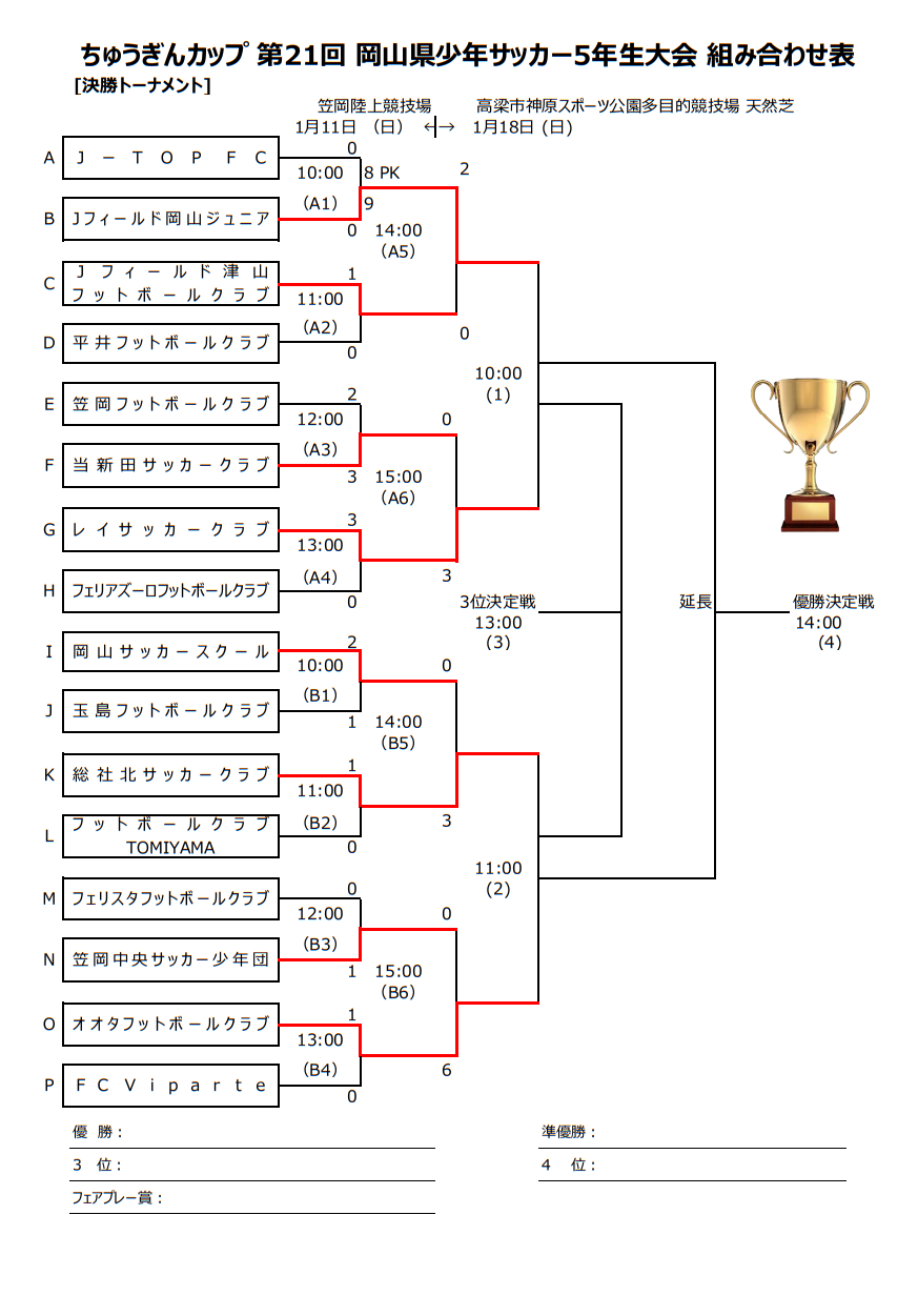 2024年度ちゅうぎんカップ 第20回岡山県少年サッカー5年生大会岡山県大会 優勝はオオタFC!情報ありがとうございます!