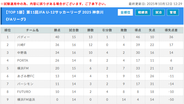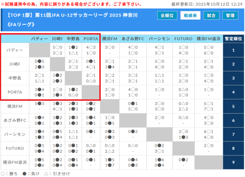 ◇第11回JFA U-12サッカーリーグ 2025 神奈川《FAリーグ》TOPリーグ1部リーグ