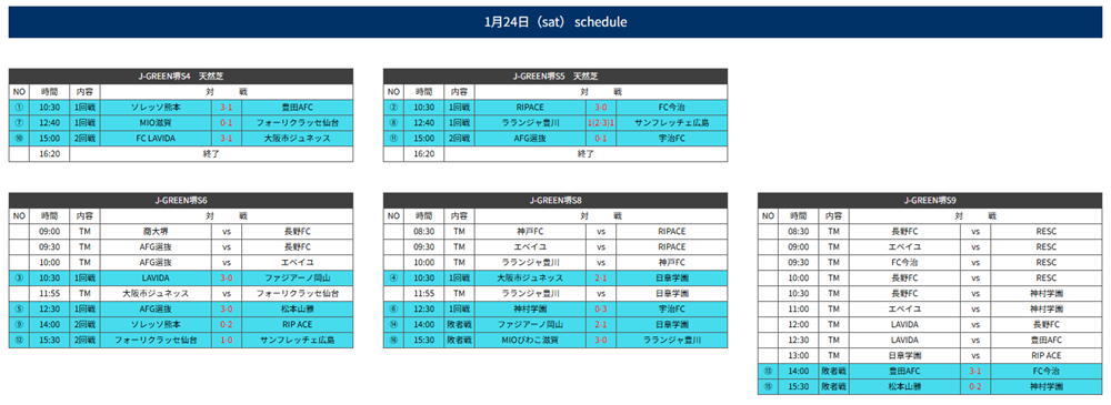 RIP ACE SC(大阪)・大阪市ジュネッスFC(大阪)・宇治FC(京都)・MIOびわこ滋賀(滋賀)